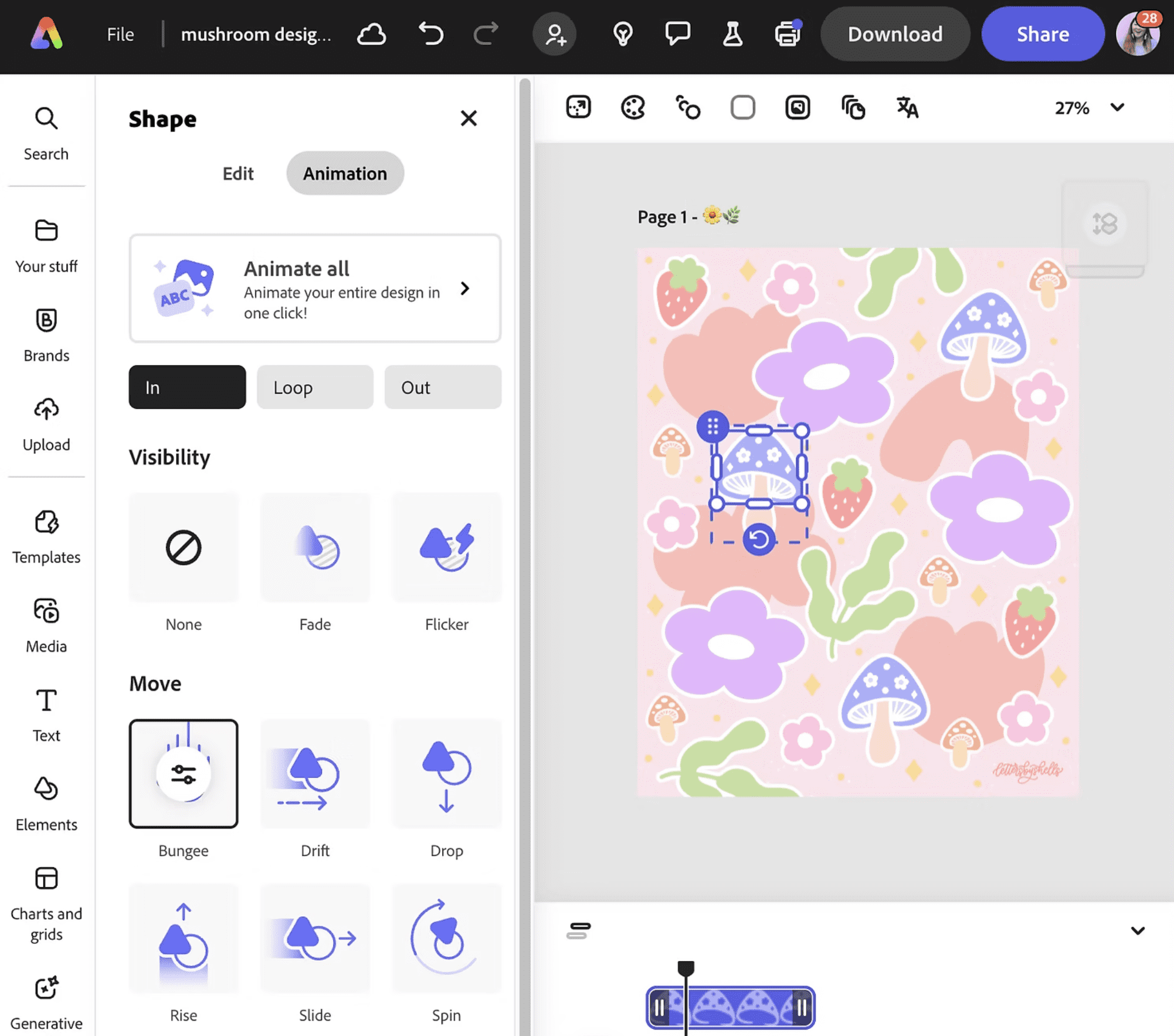 Yayy! I’ve been loving the animations tool in Adobe Express to bring my artwork to life! I also love that I can stay in sync with my fav apps like Photoshop and Illustrator while using Adobe Express + access all the fun Adobe Fonts, tons of fun templates, and stock photos too. It’s been my go-to for the past few years and I thought it’d be fun to share how I use Adobe Express in my workflow as a full-time artist + business owner! Sharing a sneak peek below.